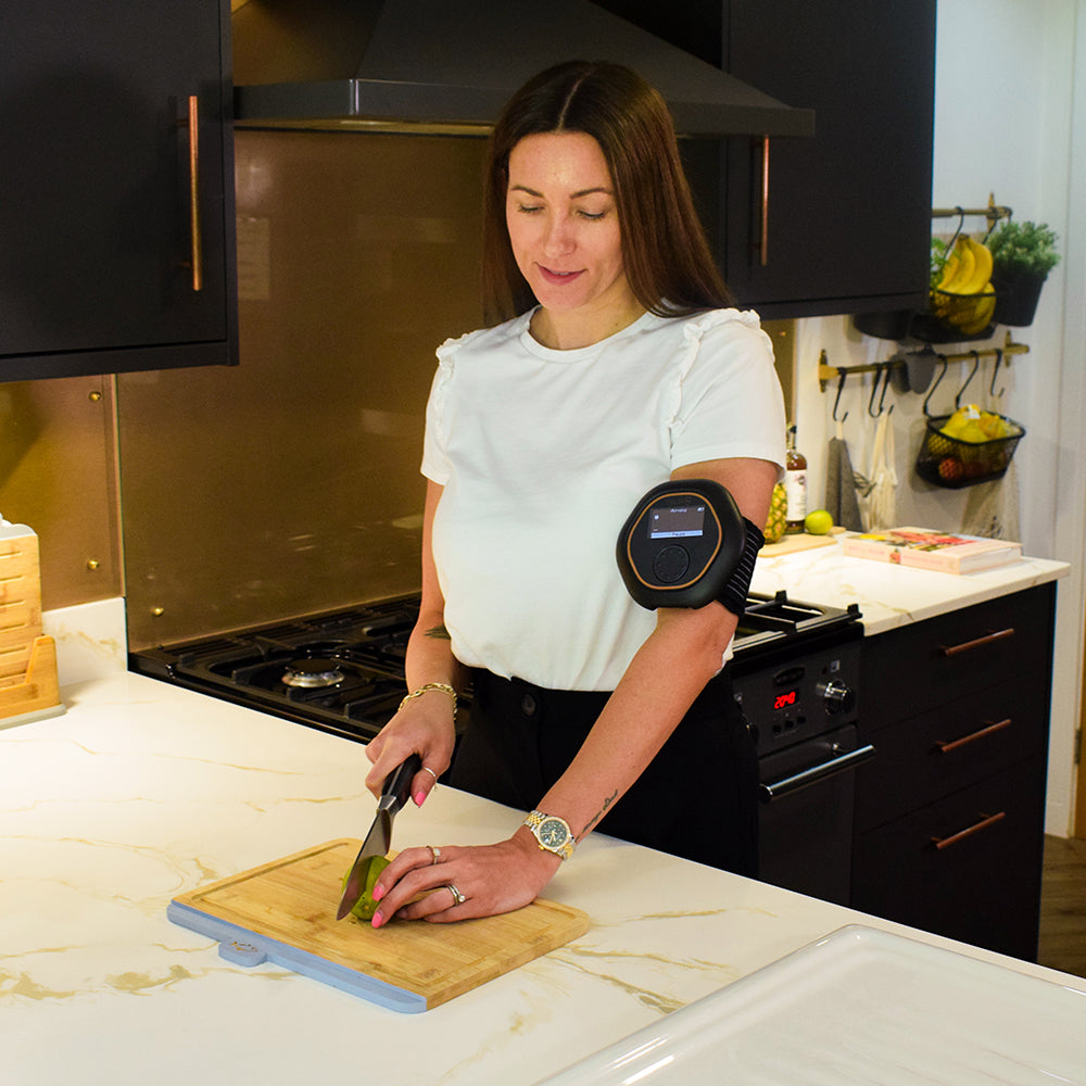 The controller can be worn while walking, gardening, cooking, or relaxing. It works around your life, not the other way around. -